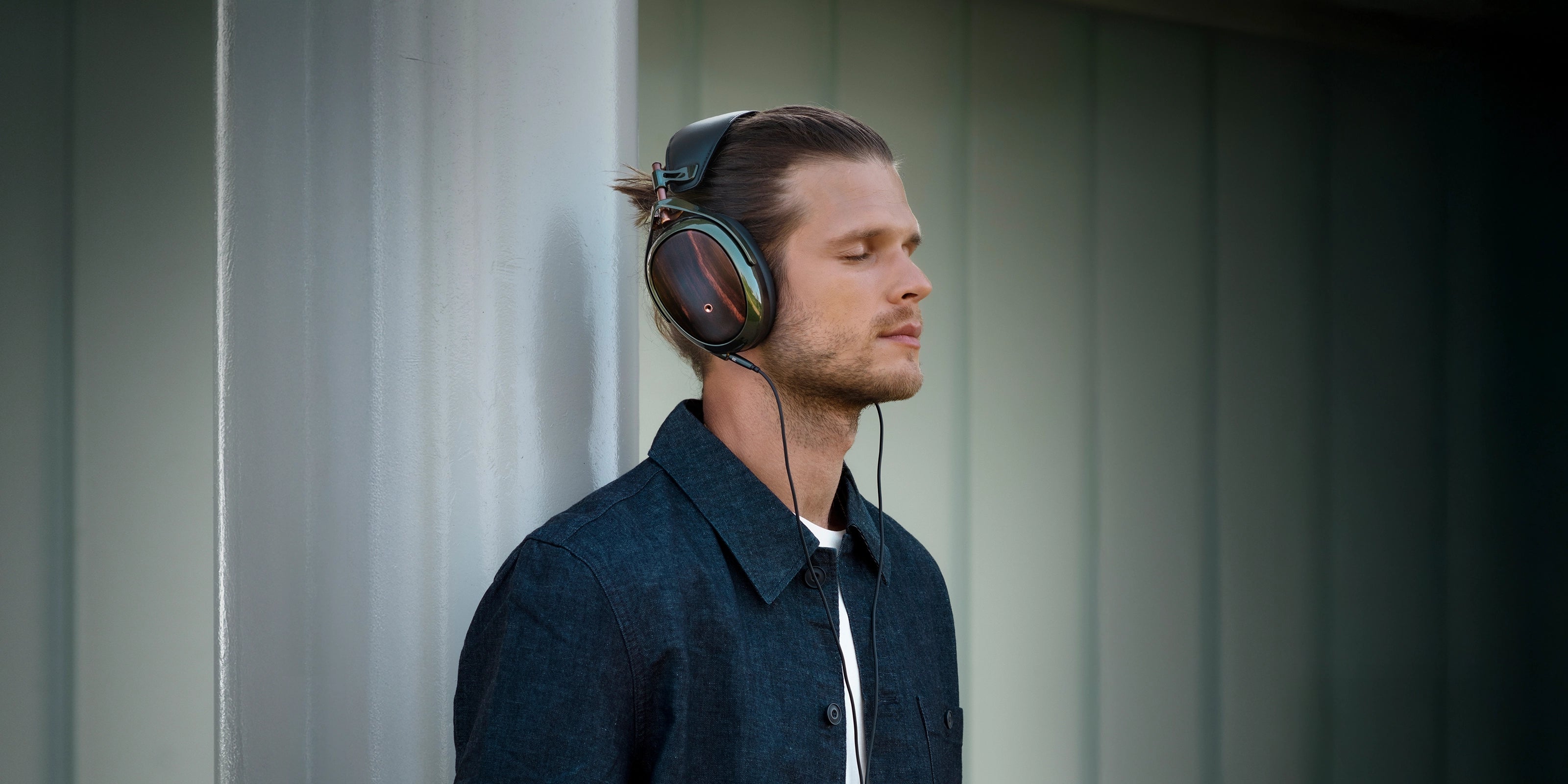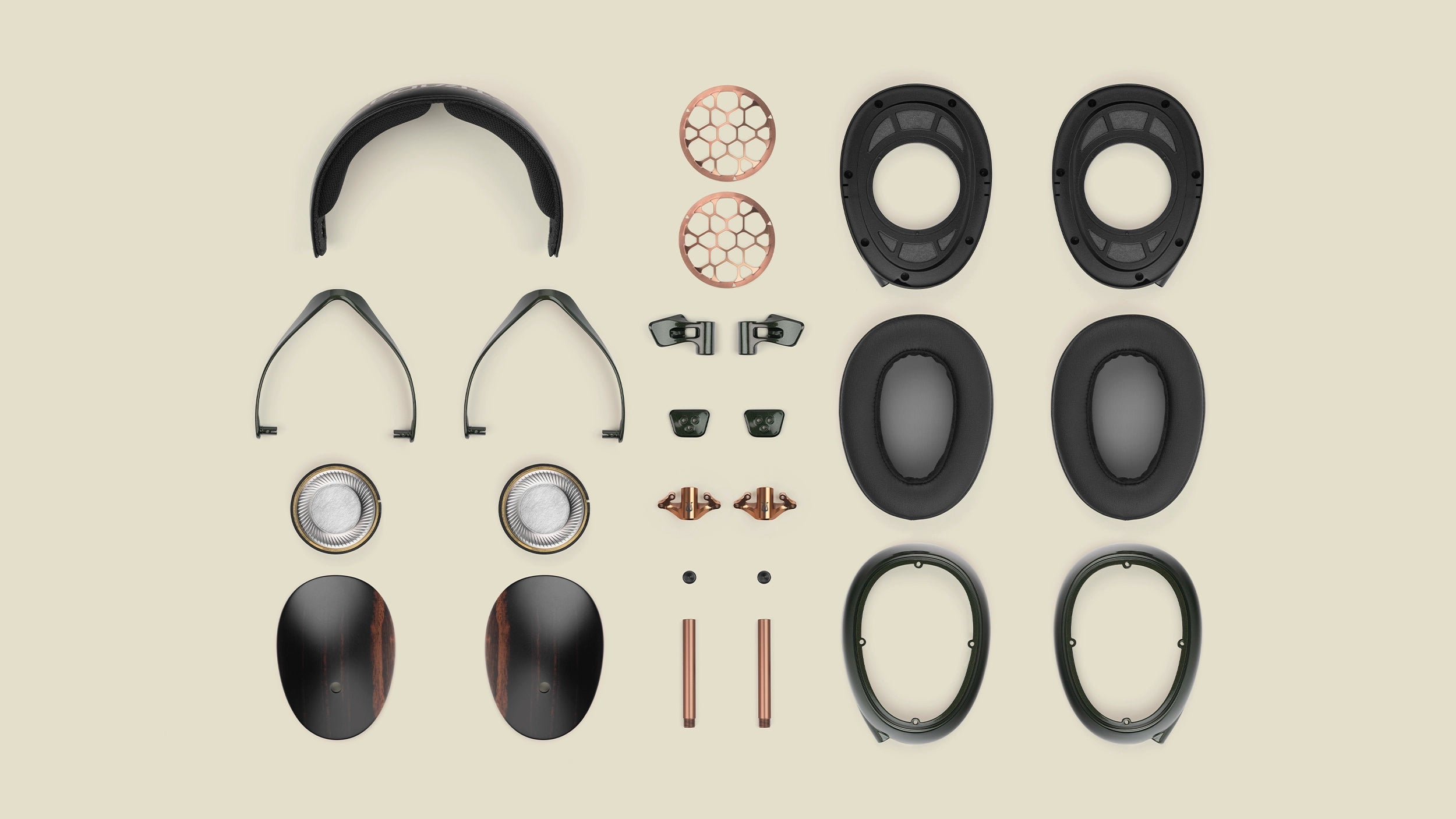 The ear cups are adorned in Macassar ebony – a heavy, dense, and aesthetically pleasing hardwood known for its deep, rich brown coloration punctuated by intricate golden-brown stripes.