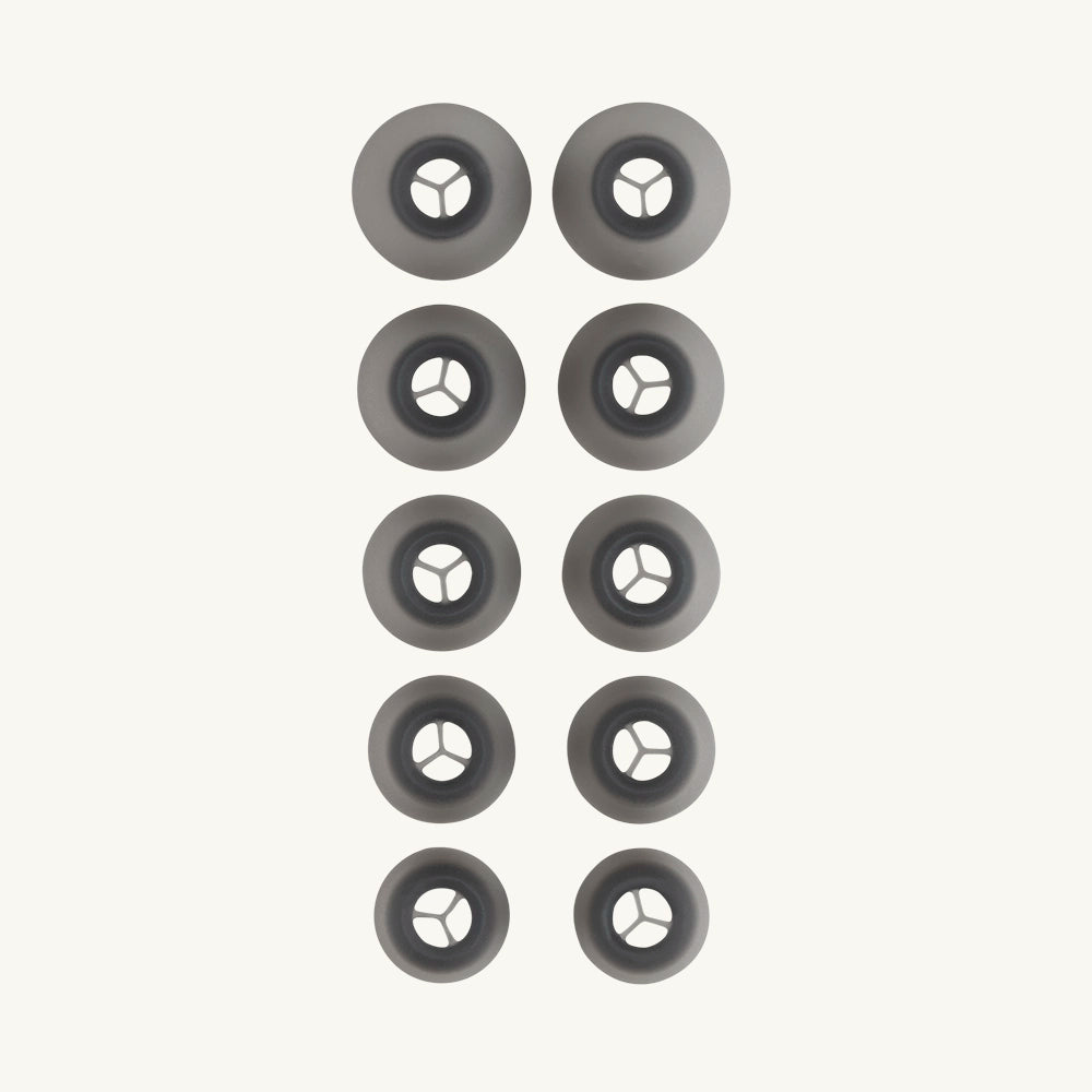 - Five (5) pairs of liquid silicone ear tips included: XS, S, M, L, XL